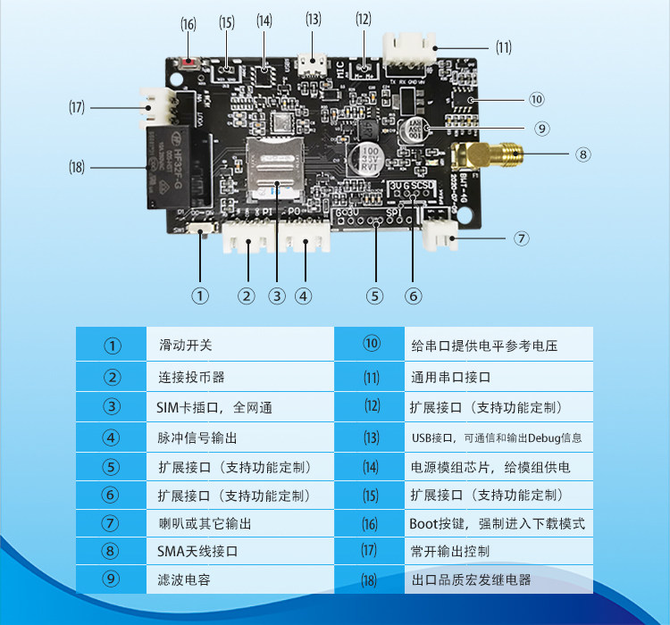 是配合原设备上的投币器使用的,以模拟投币器产生的脉冲信号传输给设备主板,不对原设备进行任何更改的基础上增加移动支付的功能。比如1元钱一个脉冲信号2元钱2个脉冲信号等等....用于传统老款售水机、洗车机,充电桩,摇摇机,娃娃机,兑币机,售纸机,自助冷饮机等等自助设备。