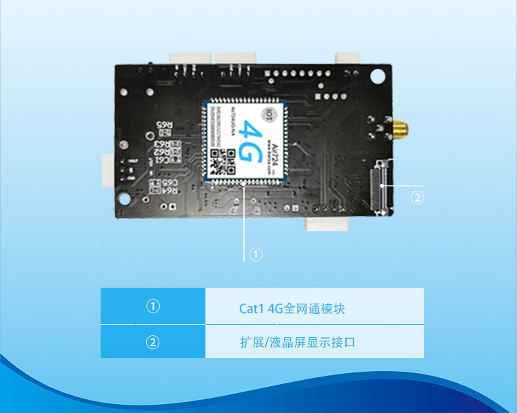 4G模块是指硬件加载到指定频段,软件支持标准的LTE协议,软硬件高度集成模组化的一种产品的统称。具有通信速度快、网络频谱宽、通信灵活等特点。硬件将射频、基带集成在一块PCB小板上,完成无线接收、发射、基带信号处理功能。软件支持语音拨号、短信收发、拨号联网等功能。4G模块通过高速联网,将所有终端业务数据及设备运行状态实时传输到业务中心,通过管理监控平台,实时监测终端设备运行状态,并可及时排查设备故障。在运营成本、运营规模、服务时效等多方面大大提升了效率。